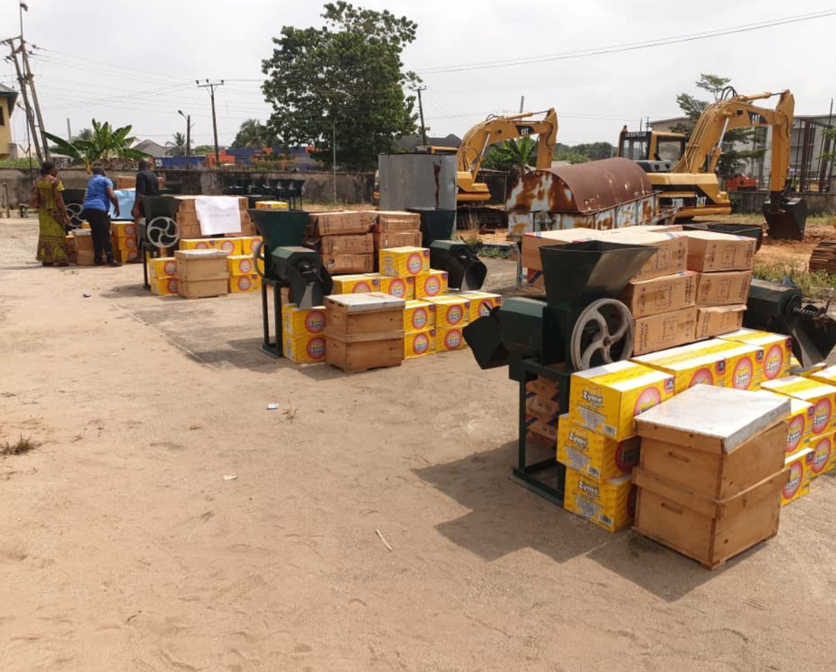 The Minister of Agriculture and Food Security, Sen. Abubakar Kyari, represented by a director in the ministry, Dr Iyere-Usiahon Perpetua, distributed the implements to the farmers in Owerri.